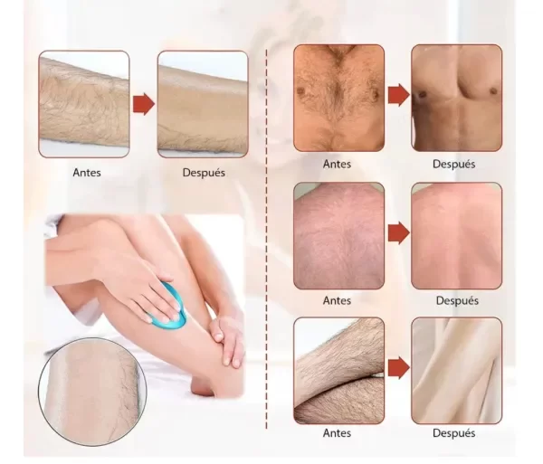Se trata de una depiladora física, indolora, rápida, reutilizable y fácil de usar en cualquier parte del cuerpo.